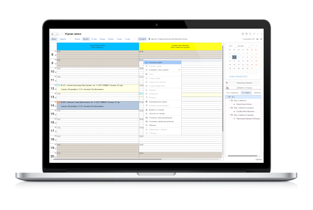 Мобильное приложение для устройств Андроид и iOS на мобильной платформе 1С:Предприятие 8  позволяет использовать в работе смартфон или планшет.С помощью приложения врач-стоматолог имеет доступ к журналу записей, графику работы, истории приемов пациентов.