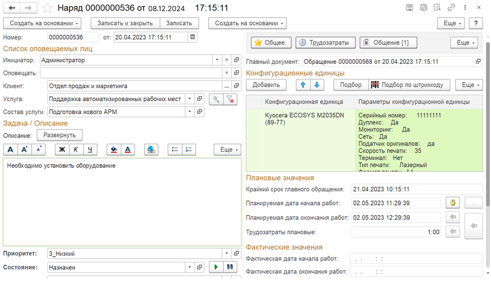 Кроме того, в информационную базу системы были внесены данные о компьютерной технике и компонентах инфраструктуры. Это дало возможность оперативно выполнять инвентаризацию, отслеживать перемещения техники.