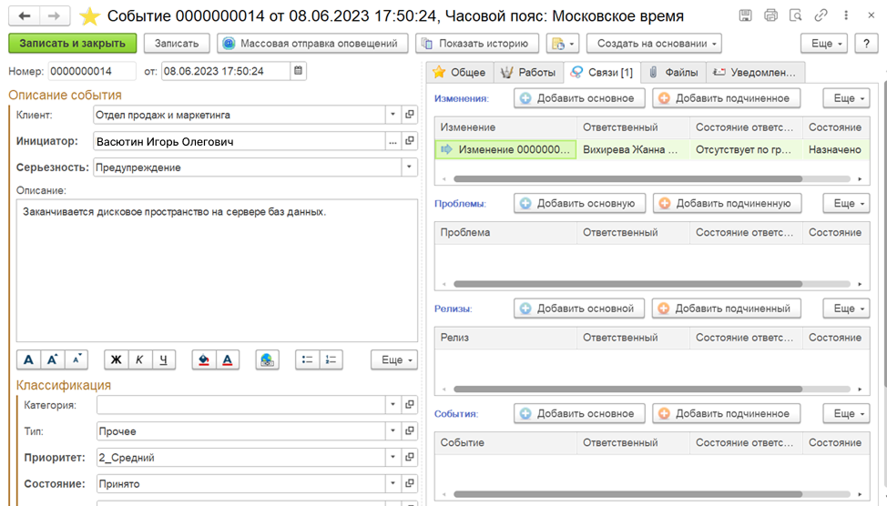 Кроме того, возникали сложности в работе диспетчерской службы. Отсутствие автоматизации приводило к задержкам при приеме заявок на обслуживание, длительной постановке инцидентов в очередь, и как следствие, становилось причиной несвоевременной отработки поставленных задач.