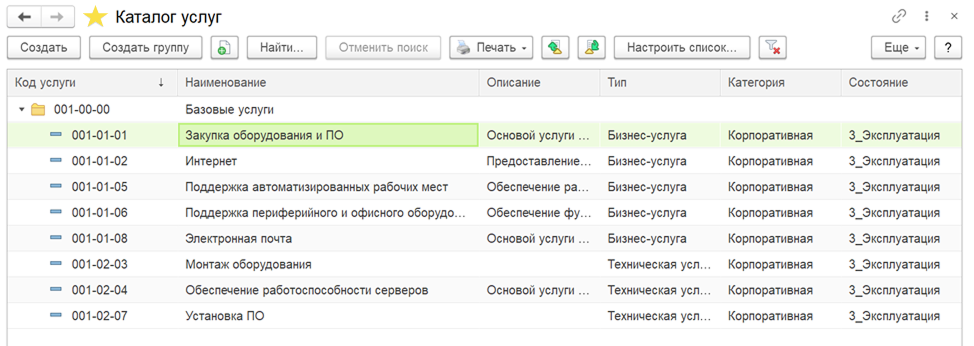 Формируется каталог IT-сервисов. Настраиваются типовые шаблоны и соглашения об уровне обслуживания (SLA)