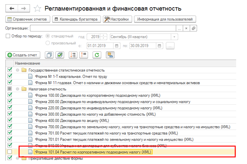 Форма 101.04 - форма налоговой отчетности «Расчет по корпоративному подоходному налогу, удерживаемому у источника выплаты с дохода нерезидента».