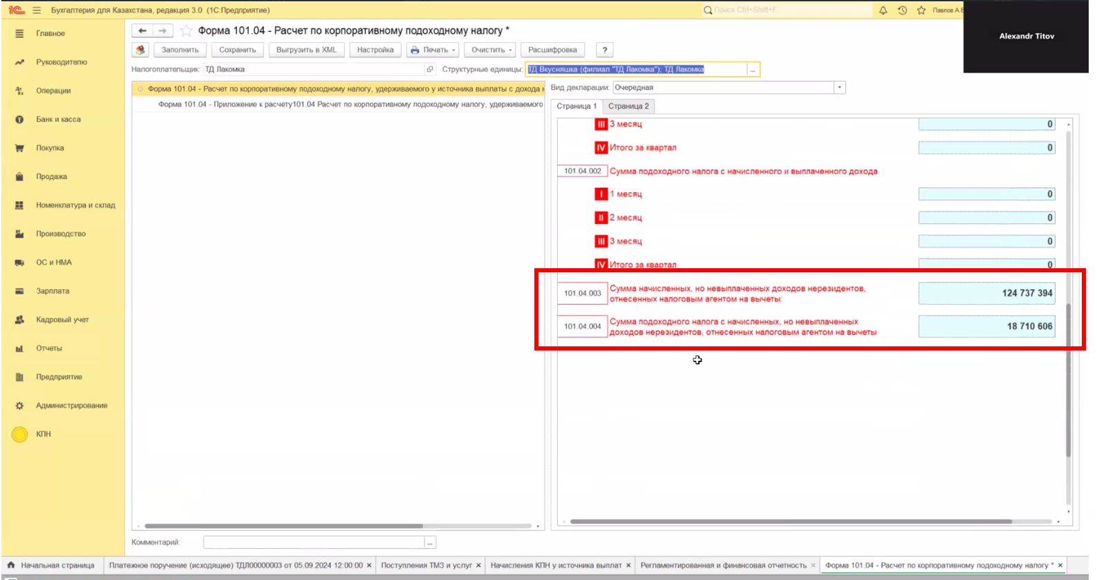 Настройте Отчет по форме 101.04 «Расчет по корпоративному подоходному налогу, удерживаемому у источника выплаты с дохода нерезидента» в виде внешнего расширения для «1С:Бухгалтерия для Казахстана» и формируйте отчет прямо в 1С!