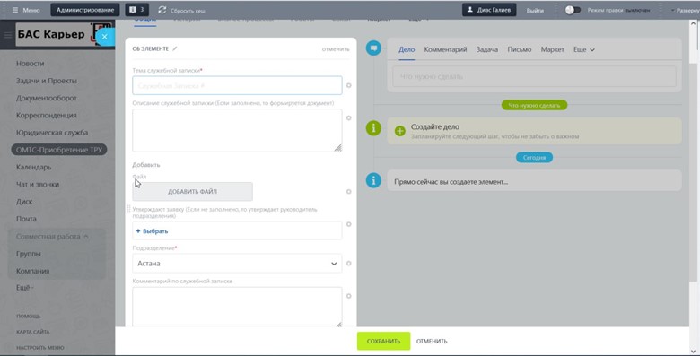 Автоматизация работы по служебным запискам