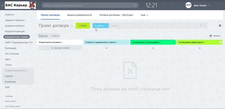 Тем не менее до автоматизации бизнеса сотрудники вели переговоры в Google Workspace, согласовывали заявки через электронную почту, передавали бумажные документы из отдела в отдел. Договоры терялись, задачи в служебных записках персонал исполнял через раз и кое-как. От дефицита контроля страдала вся компания, но особенно — юридический отдел и отдел закупок.