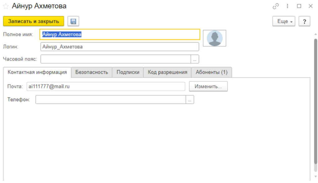 • Сохраните изменения кнопкой Записать и закрыть.