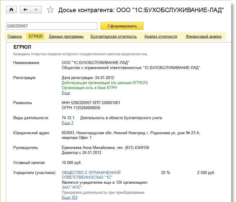 Сервис для автозаполнения реквизитов контрагентов в программах 1С